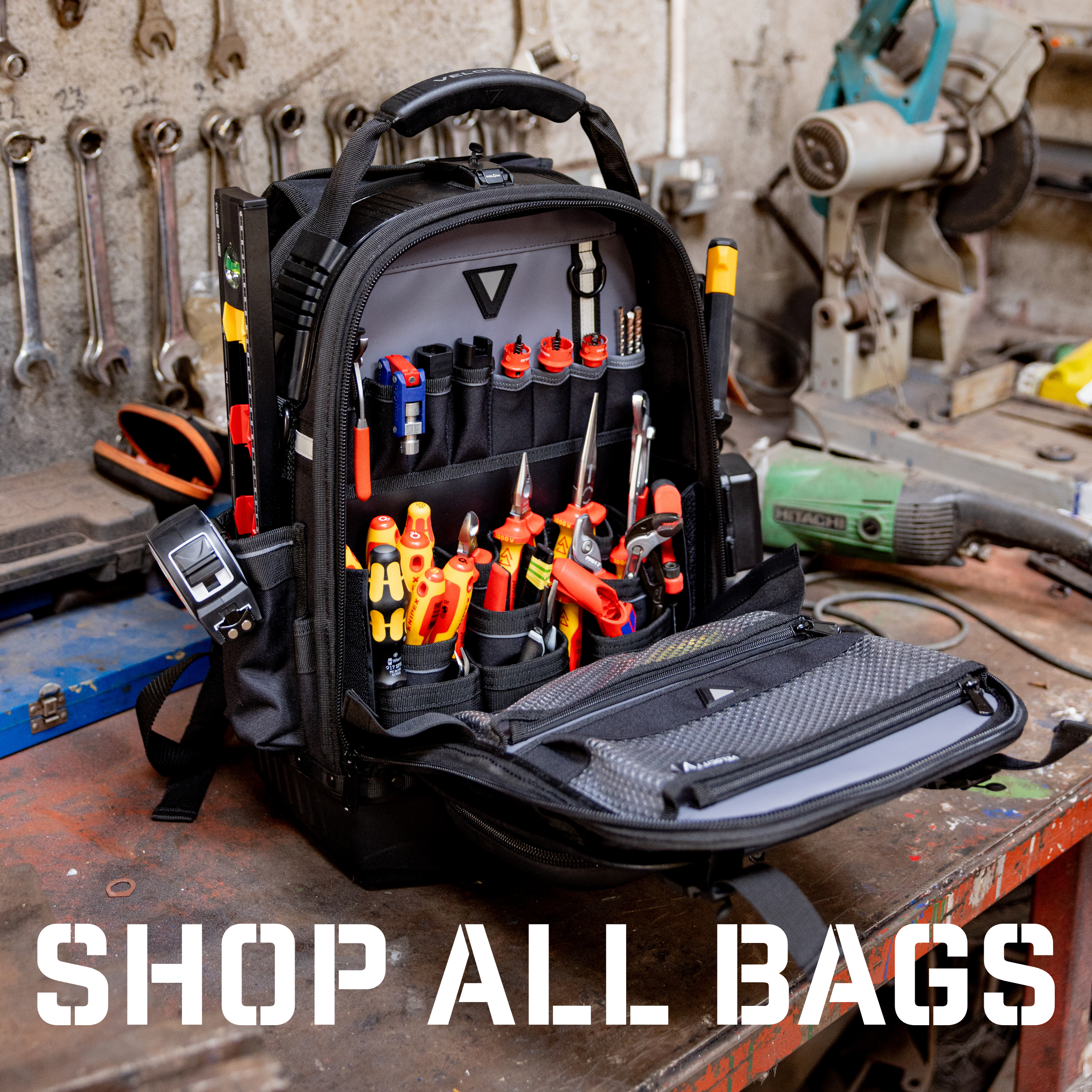 Whether you're climbing ladders, crawling under floors or working outdoors, our bags help you stay organised, protect your kit, and keep you on task.
